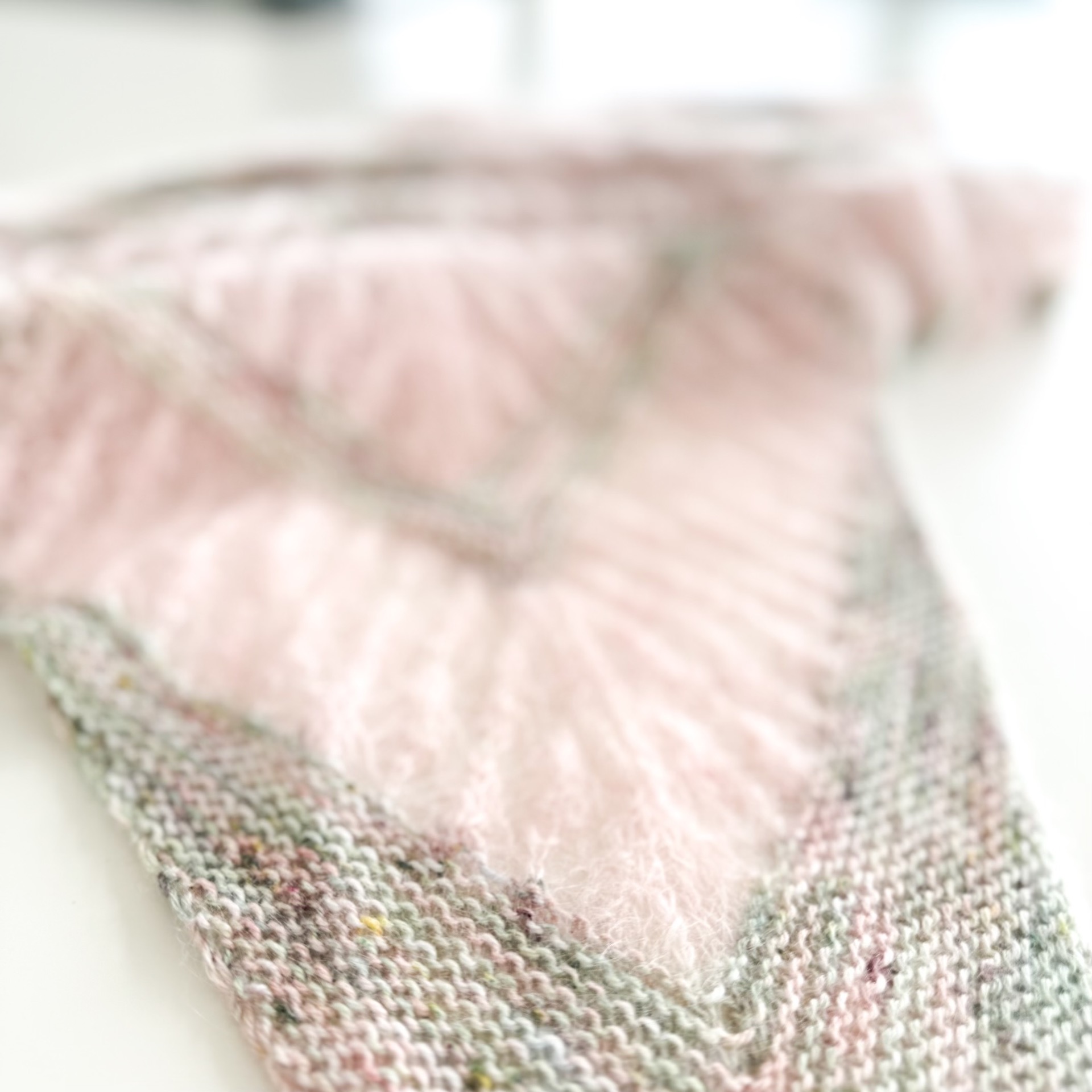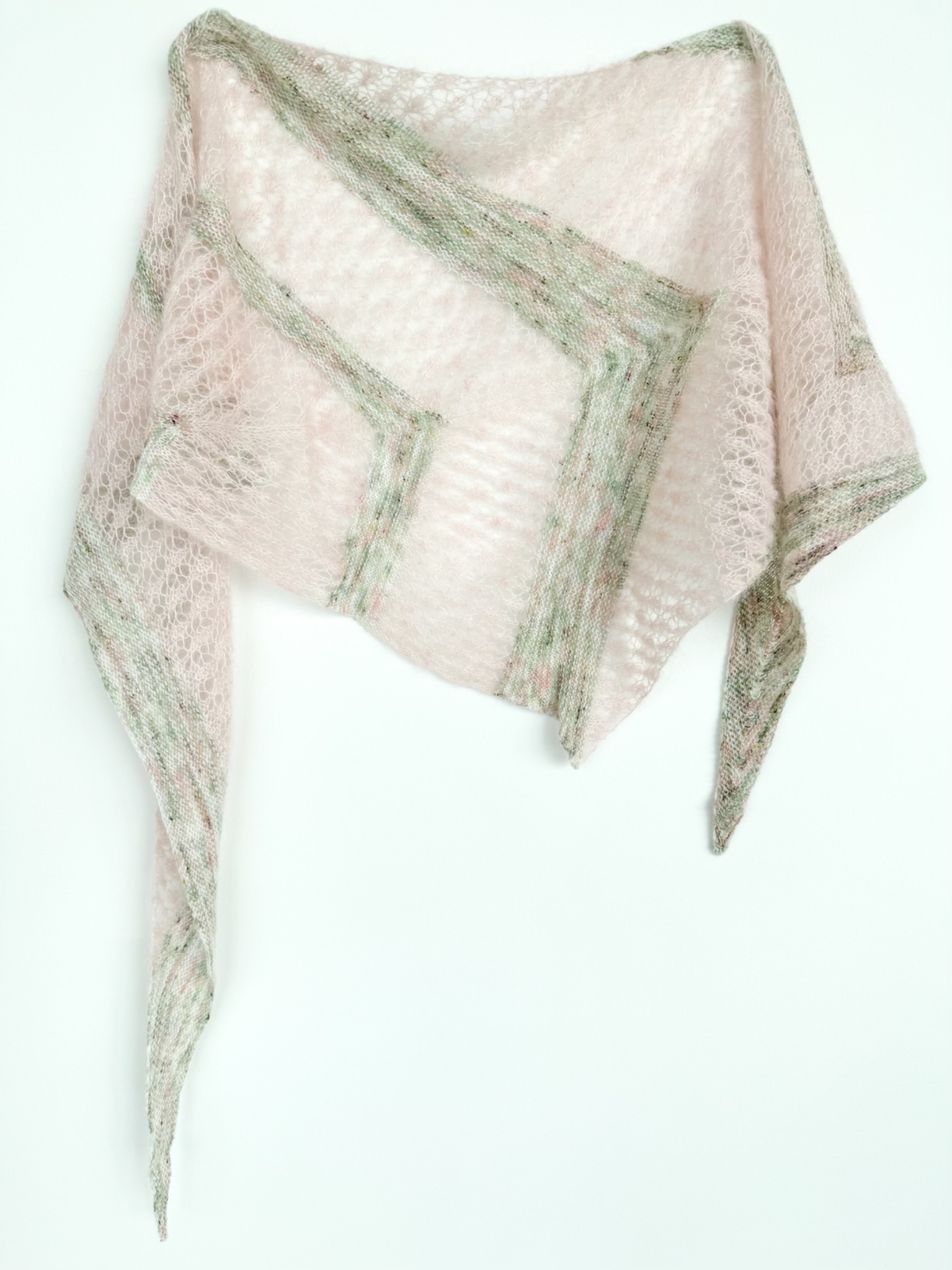 100 g Akw strømpegarn i farven English Garden og50 g Akw mohair Sport i farven Soft and Pale