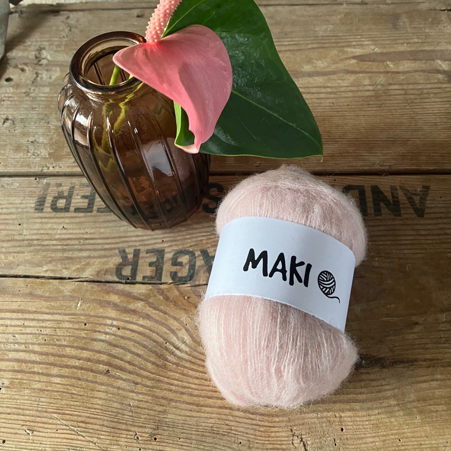 Lækkert fluffy garn som kan strikkes alene eller bruges som følgetråd, evt. som erstatning for en mohair.