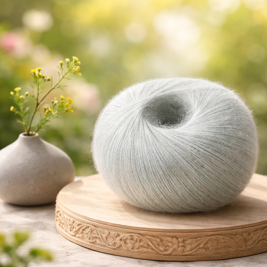 75 % økologisk kæmmet bomuld og 25% Super Kid mohair