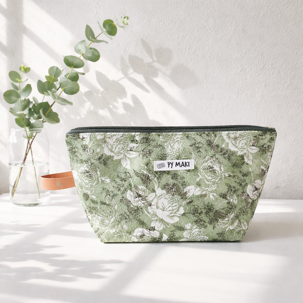Projekt taske m. grønne blomster - bemærk størrelsen.