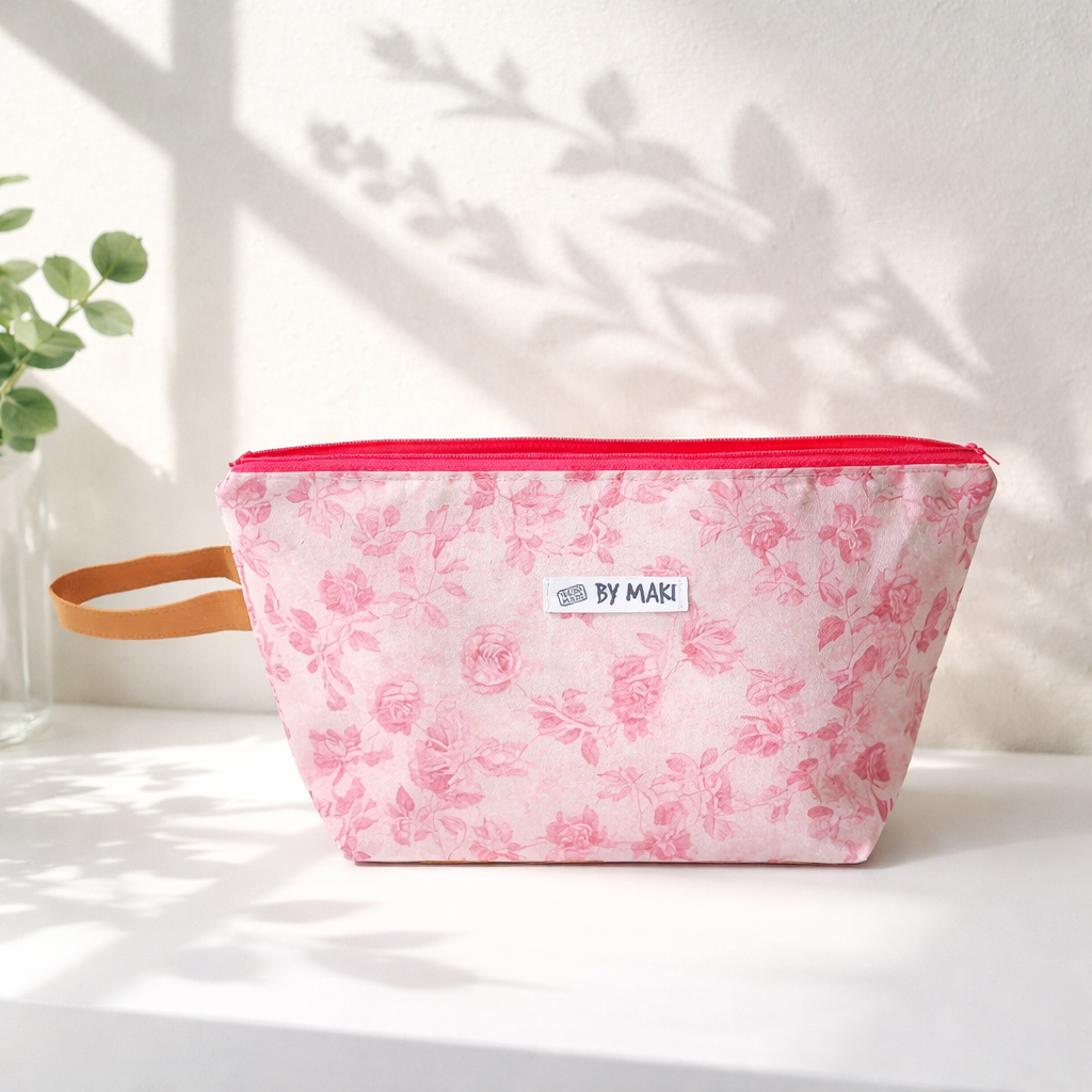 Projekt taske m. lyserøde blomster - bemærk størrelsen.